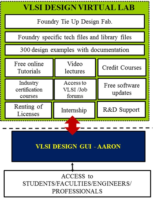 The virtual labs have the advantages for students to learn and carry out experiments online without their physical presence in the labs. The licensed software’s and hardware’s that are of industry standards can be accessed by student’s online and carryout experiments. The labs combine animations, case studies, illustrations, video lectures, FAQ’s, e-books and tutorials providing the required information for students to engage and develop expertise in VLSI design.